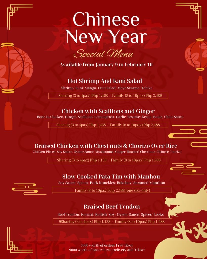 Dive into the festive spirit with the Our Plates Chinese New Year Special Menu! Available from January 9 to February 9, 2025.