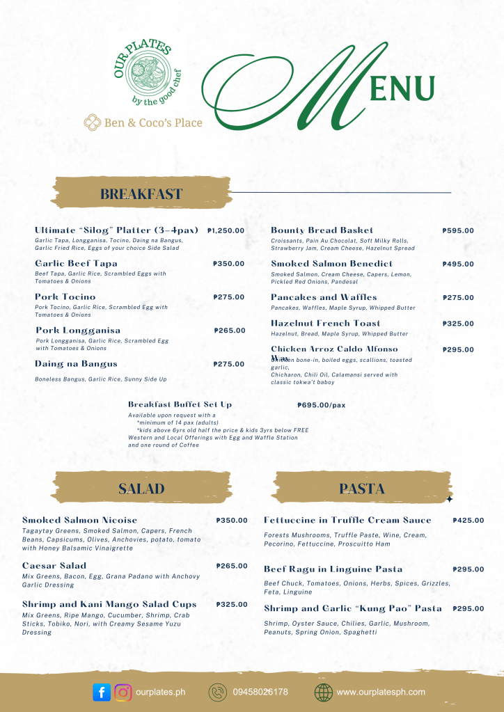 In partnership with Our Plates, this space now brings you a carefully crafted menu rooted in our signature philosophy — made with heart, thoughtfully curated, and prepared with quality ingredients.