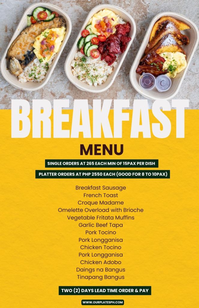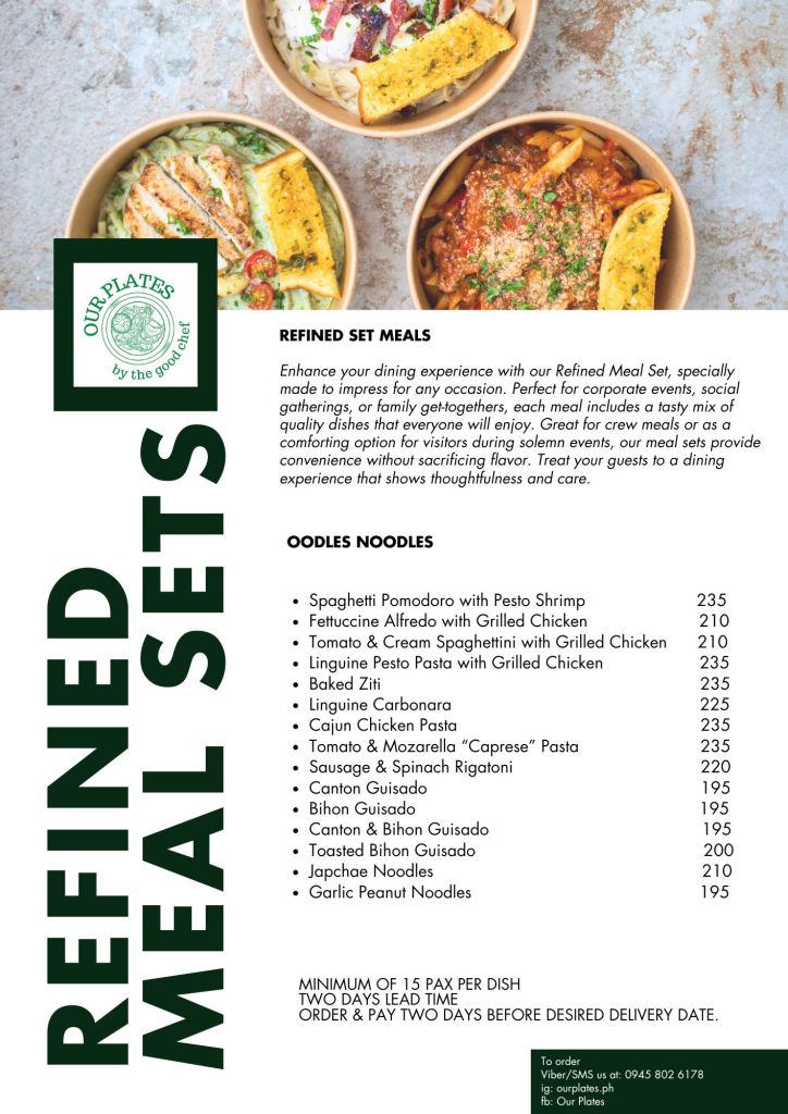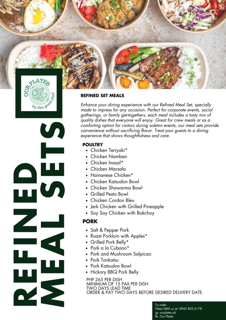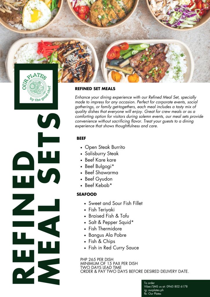 Two (2) days leadtime / Minimum of 15pax per dish/ Order & Pay 2days before delivery date/ Deliver Fee to be paid by clients